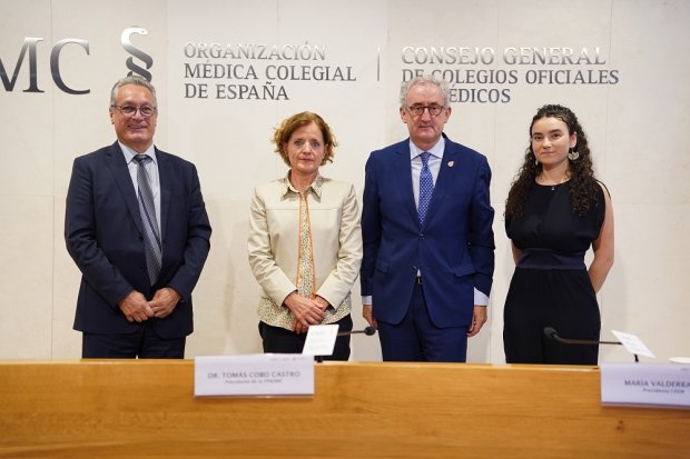 La campaña ha sido presentada esta mañana a los medios de comunicación por el Dr. Tomás Cobo, presidente de la FPSOMC; María Valderrama, nueva presidenta del CEEM, el Dr. Alejandro Andreu, presidente de la Fundación Mutual Médica, y Nina Mielgo, directora técnica de la FPSOMC; en la sede del CGCOM.