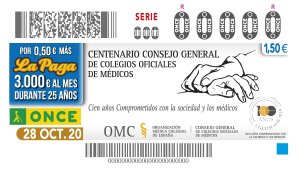 La ONCE dedicará su sorteo del miércoles, 28 de octubre, a la conmemoración del centenario del Consejo General de Colegios Oficiales de Médicos de España (CGCOM) con la emisión de 5,5 millones de cupones que difundirán por toda España esta efeméride para resaltar el compromiso y misión de la corporación a lo largo de estos cien años