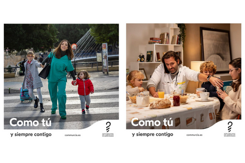 Bajo el lema ‘Como tú y siempre contigo’, la campaña muestra a dos facultativos en su día a día personal (como tú) que acuden a sus trabajos para ayudar a sus pacientes (siempre contigo).