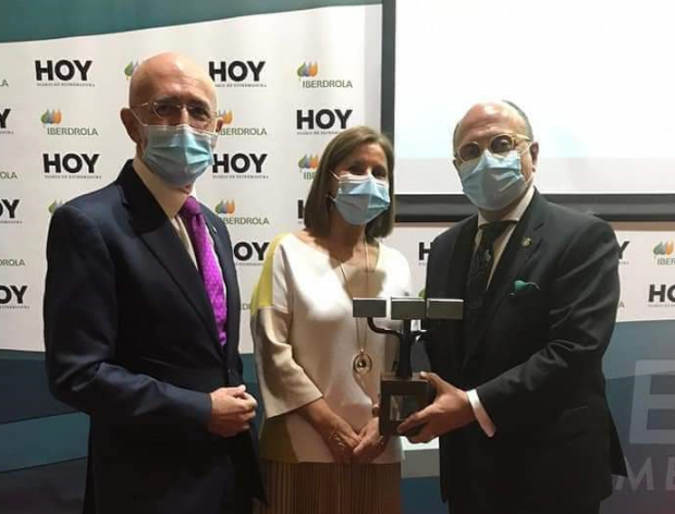 El presidente del Colegio de Médicos de Badajoz, el Dr. Pedro Hidalgo, y el presidente del Colegio de Médicos de Cáceres, el Dr. Arjona recogieron el premio Extremeños de HOY, otorgado por el diario regional HOY como reconocimiento a la labor diaria de los médicos extremeños en su lucha contra la pandemia
