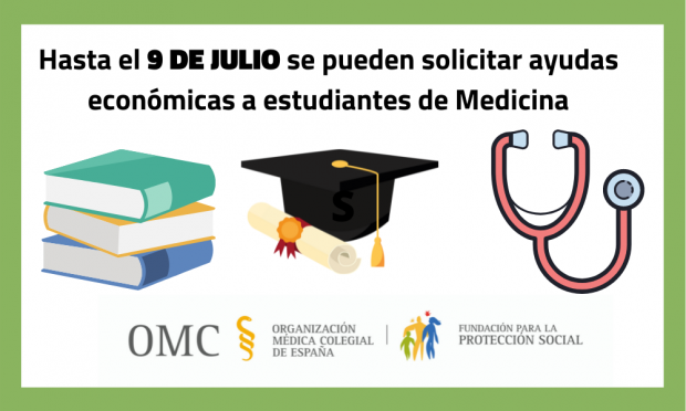 El plazo para solicitar las veintidós ayudas económicas a estudiantes de Medicina de toda España con dificultades económicas para continuar sus estudios concluirá el próximo 9 de julio tras haberse ampliado una semana. Estas becas son convocadas por la Fundación para la Protección Social de la Organización Médica Colegial (FPSOMC), el Consejo Estatal de Estudiantes de Medicina (CEEM) y la Fundación Mutual Médica (FMM)