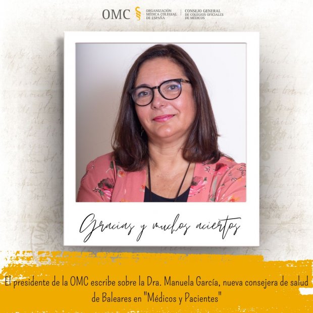 Ser presidente de la Organización Médica Colegial (OMC) es un enorme reto que permite grandes satisfacciones, algunas de ellas tan sencillas, pero tan relevantes como conocer a grandes profesionales que se convierten en compañeros que más tarden son amigos para siempre. Sin duda este es el caso de la Dra. Manuela García Romero, vicepresidenta segunda de la OMC, quién desde esta semana se hace cargo del presente y futuro de la sanidad balear los próximos años.