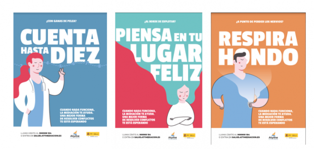 Con el objetivo de colaborar a crear un mejor clima en los hospitales, acercando posturas entre pacientes y profesionales -también entre los profesionales entre sí- y a la vez difundir la mediación como herramienta de resolución de conflictos, la Fundación ATYME ha creado una campaña denominada ‘Tú eres la medicina de la Sanidad’. Una serie de carteles que apelan a los clásicos trucos populares para calmarse cuando los nervios atacan (contar hasta diez, cantar tu canción favorita, respirar hondo), muestran a pacientes y profesionales que ya conocen la mediación con aspecto relajado y positivo. Porque cuando la situación es grave y ninguno de esos trucos funciona, lo mejor es confiar en herramientas pacíficas para resolver conflictos, que fomentan el diálogo y la comprensión de los motivos del otro.