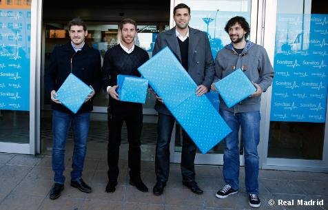 Iker Casillas, Sergio Ramos, Felipe Reyes y Sergio Llull ejercieron de Reyes Magos y contribuyeron a hacer más felices a los niños que pasarán las Navidades ingresados en el hospital. Allí firmaron autógrafos y se hicieron fotografías con unos chavales que por un momento olvidaron dónde estaban y cuyas caras de felicidad, fueron la mejor recompensa para los jugadores.
