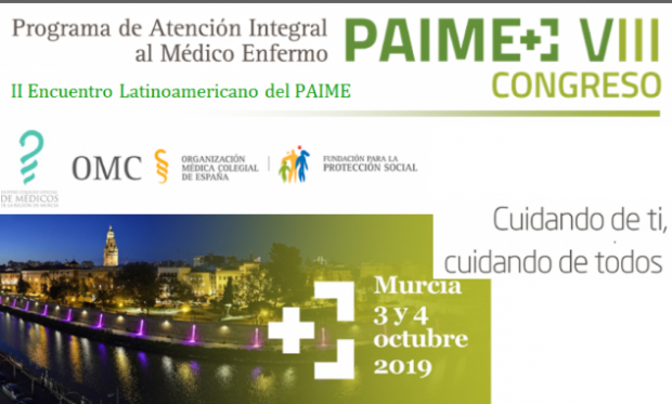 La Fundación para la Protección Social de la Organización Médica Colegial (FPSOMC) junto al Colegio de Médicos de Murcia organizan el VIII Congreso Nacional del Programa de Atención Integral al Médico Enfermo (PAIME) y II Encuentro Latinoamericano del PAIME bajo el lema “Cuidando de ti, cuidando de todos”. A través de su página web se puede acceder al formulario de inscripciones del Congreso que tendrá lugar en Murcia los días 3 y 4 de octubre, así como al resto de la información relacionada con el encuentro