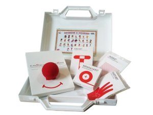 El botiquín contiene consejos prácticos para cuidar a los más pequeños e incluye una recopilación de dípticos informativos sobre salud infantil y juvenil redactados por la AEPap. Todo ello explicado con rigor médico y desde un punto de vista lúdico y divertido Este material va acompañado de una nariz de payaso y material sanitario homologado pero con un toque de humor (tirizás, jajasas, esparatato y guantrés).